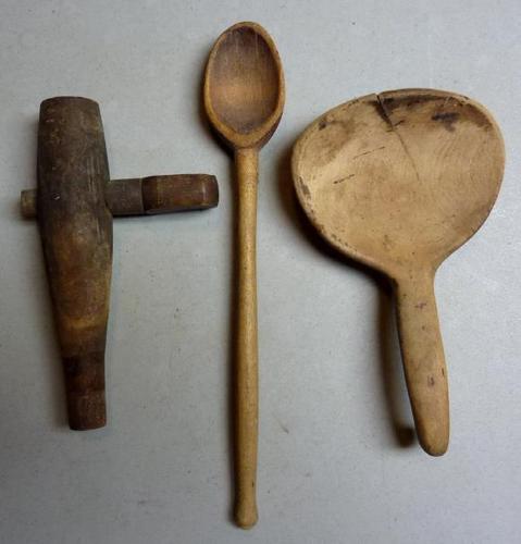 Title (ebay affiliate link): LOT OF 3 ANTIQUE WOODEN PRIMITIVE UTENSILS A SPIGOT & 2 SPOONS