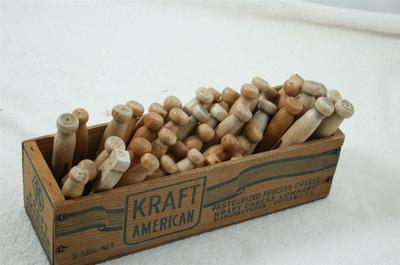 Title (ebay affiliate link): 44 Vtg. Weathered Peg Round Clothes Pins in Old Wood Kraft Cheese Box