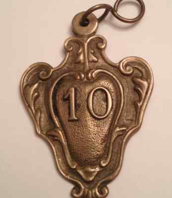antique brass keychain number "10"