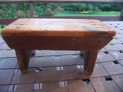 PRIMITIVE BROWN FOOT/STEP STOOL, VINTAGE/ANTIQUE