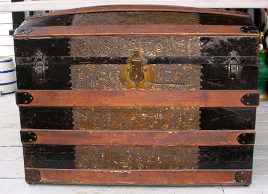 Title (ebay affiliate link): ANTIQUE 36" EMBOSSED DOME TOP STEAMER TRUNK W/ KEY