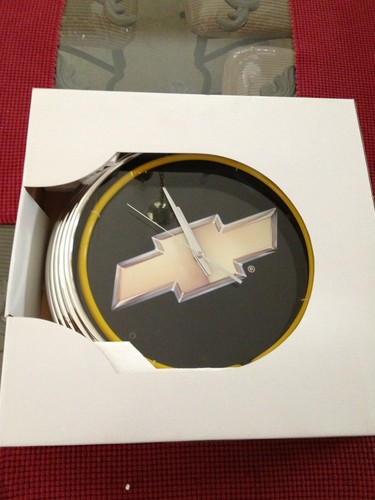 Title (ebay affiliate link): Chevy Bowtie Emblem Chrome Bezel Clock With GOLD NEON RING 15" Diameter
