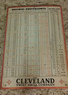Antique Cleveland Twist Drill Co. Original Metal Sign tap sizes tools