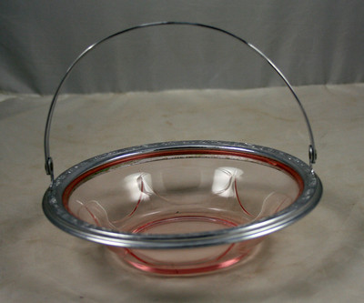 Pink Depression Basket Bowl with Metal Rim & Bail