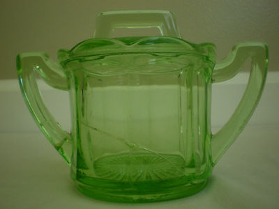 Title (ebay affiliate link): Green Depression Glass Covered Sugar Bowl Dish Cup