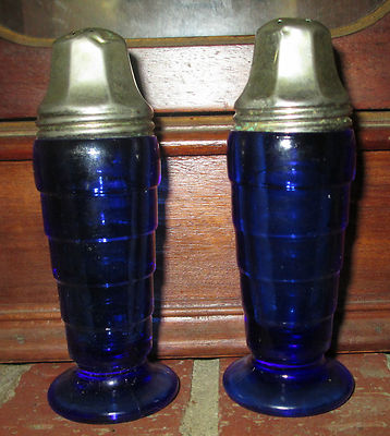 Title (ebay affiliate link): Moderntone Cobalt Blue Salt & Pepper Shakers With Lids, Genuine Hazel-Atlas