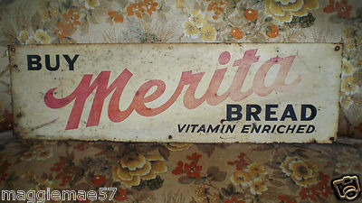 Title (ebay affiliate link): Vintage Original Tin/Metal Merita Bread Sign. 30"long x 9" wide. Nice Sign. TLC