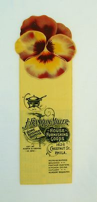 Title (ebay affiliate link): Victorian Celluloid Advertising Trade Card Book Mark Calendar Pansy Flower 1900