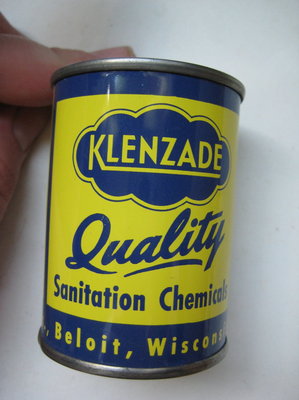 Klenzade Sanitation Chemicals Children's tin can bank, Beloit Wisconsin