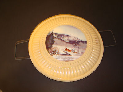Title (ebay affiliate link): Vintage Wood/Coal Stove Decorative Metal 8" Wall/Chimney Cover Winter Farm Scene