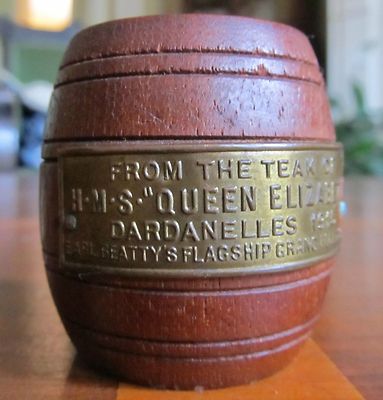 Treen Barrel Match Holder from the Teak of HMS Queen Elizabeth