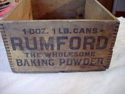 "VINTAGE RUMFORD BAKING POWDER WOODEN ADVERTISING BOX DOVETAILED"