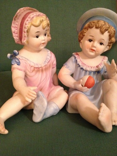 Vintage Antique Bisque Porcelain Piano Baby Figurine Boy and Girl
