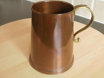VINTAGE COPPER TANKARD WITH BRASS HANDLE