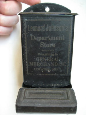 Atwater MN Minnesota Leonard Johnson Store Adv Tin Kitchen Matchsafe Antique
