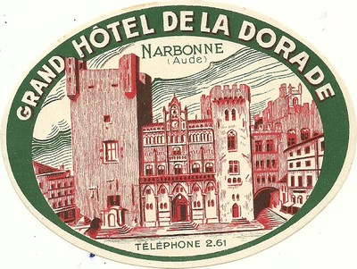 GRAND HOTEL DE LA DORADE luggage DECO label (NARBONNE)