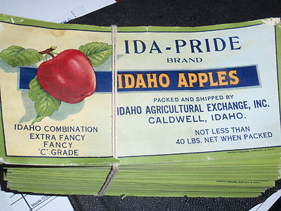 vintage 2" stack of apple box labels original Idaho agricultural advertising