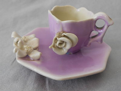 Title (ebay affiliate link): VINTAGE 50'S VIOLET RAISED ROSES MINIATURE DEMITASSE CUP AND SAUCER