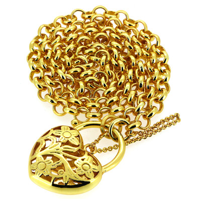18K Yellow Gold Filled Filigree Chain Heart-shaped Padlock Ring Women's Necklace