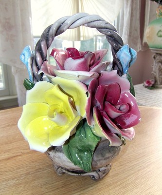 Title (ebay affiliate link): VINTAGE AUTHENTIC CAPODIMONTE PORCELAIN ROSE FLOWER BASKET MADE IN ITALY