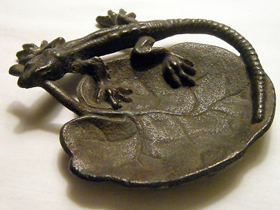 Title (ebay affiliate link): Vintage Bronze Ashtray Salamander Biting Lilly Leaf Waterloo Register Co. Iowa
