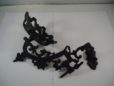 VINTAGE BLACK CAST IRON WALL MOUNT OIL LAMP WALL BRACKET HOLDER