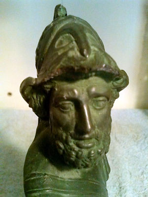 Title (ebay affiliate link): Vintage Spelter Statue Roman/Greek Warrior Alkiviades Bust Figurine on Pedestal