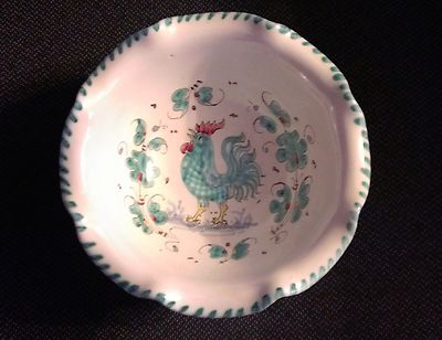 Antique Deruta Italian Majolica Pottery Bowl w/ Teal Rooster