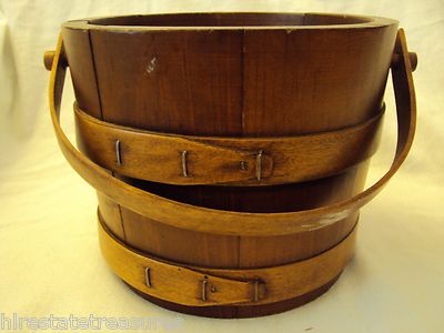 Wood Firkin Salt Bucket with Shaker Fingers and Bail Swing Handle
