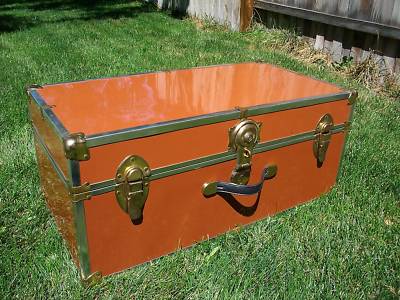 Title (ebay affiliate link): CLEAN! Antique Vtg Old Brown Metal Wood Steamer Trunk