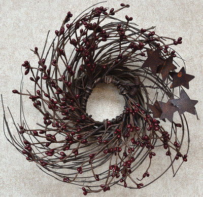 Title (ebay affiliate link): Primitive Burgundy Pip Berry Wreath/Candle ring with Rusty Tin Stars - NEW!!!