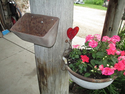 5 vintage cast iron garden flower pots old farm tool metal steampunk parts rare