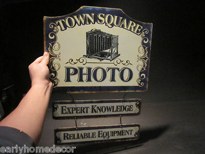 Primitive Vintage Antique Style, Tin Photography Folk Art Trade Merchant Sign