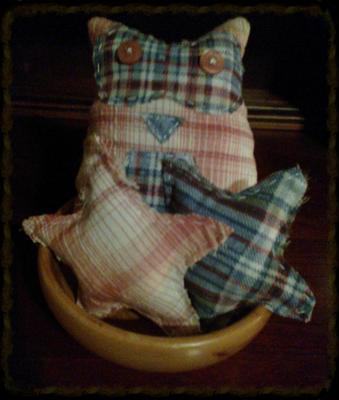 Primitive Grungy Plaid Owl Stars Bowl Filler Shelf Tuck Decoration Set of 3