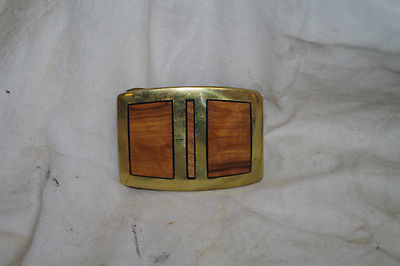 Title (ebay affiliate link): Vintage Enameled Solid Brass Belt Buckle Wood Look Modernist Mid Century Heavy