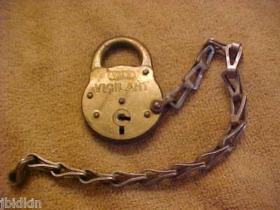 VINTAGE BRASS YALE LOCK WITH CHAIN NO KEY
