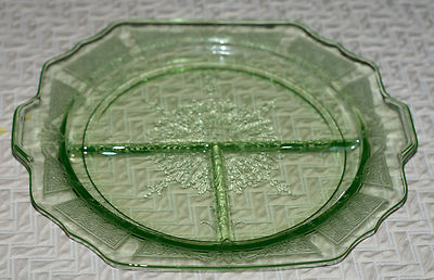 Title (ebay affiliate link): Vintage ANTIQUE GREEN ETCHED GLASS Divided RELISH Tray DISH Depression