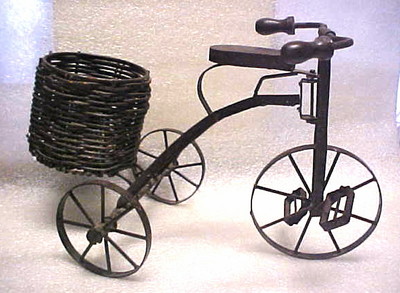 Vintage Metal & Wood Bicycle Planter Basket Estate Find 10 3/4" Tall