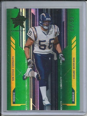 2005 Leaf Rookies & Stars Shawne Merriman Rookie Longevity Green /50 !!!!!