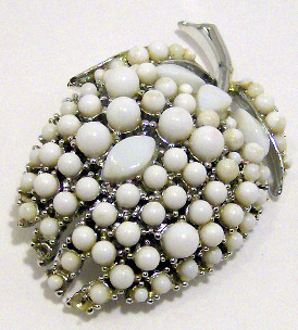 VINTAGE Apple Brooch w/ Milk Glass Stones