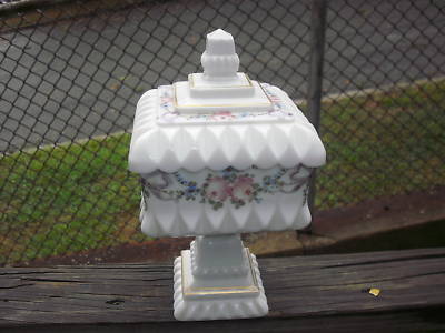 2PC WESTMORELAND ROSES &BOWS WEDDING COMPOTE MILK GLASS