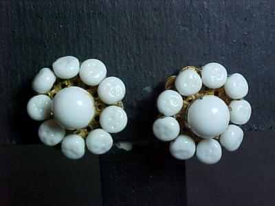 MIRIAM HASKELL EARRINGS "SIGNED EARLY MILK GLASS"
