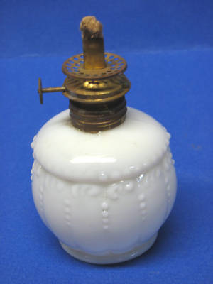 VINT ~ "ABCO NUTMEG" MILK GLASS OIL LAMP ~ BRASS W/WICK
