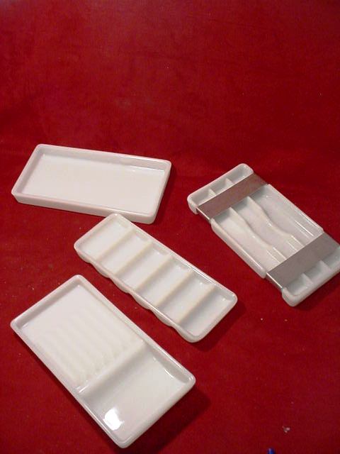 4 VINTAGE MILK GLASS TRAYS FOR DENTIST OR DOCTORS TOOLS