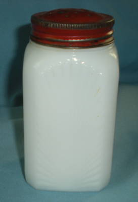 Vintage White Milk Glass Kitchen Shaker Red Metal Lid