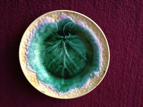 Antique Majolica Etruscan Ceramic Leaf Plate