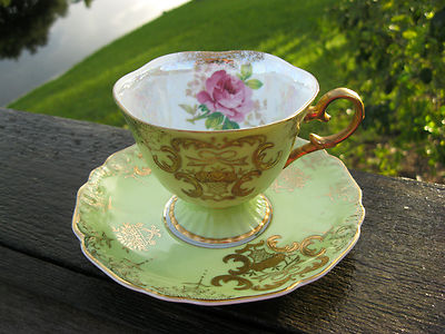 Vintage Royal Halsey Footed Tea Cup and Saucer Floral Gold Trim