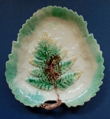 VICTORIAN MAJOLICA LEAF DISH -19TH CENTURY