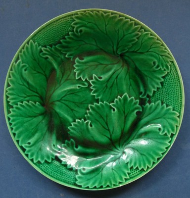 VICTORIAN GREEN GLAZED MAJOLICA LEAF PLATE (N0.2) -19TH CENTURY