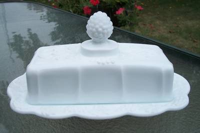 Westmoreland Milk Glass Butter Dish-Paneled Grape-NICE!